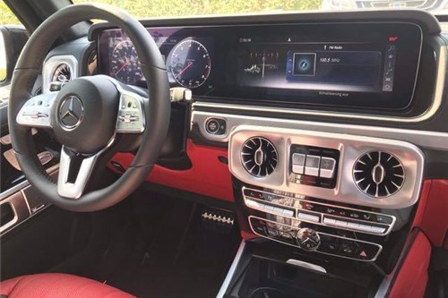 内饰上奔驰G550采用了钢琴漆桃木覆盖件加以修饰,真皮座椅和中控台材料质地上成,与外观呈现两个风格。内饰核心的仪表台整体上也保持了规矩大方的造型风格,与简洁刚毅的外观相统一,既不强悍夸张也不讲究曲线玲珑。