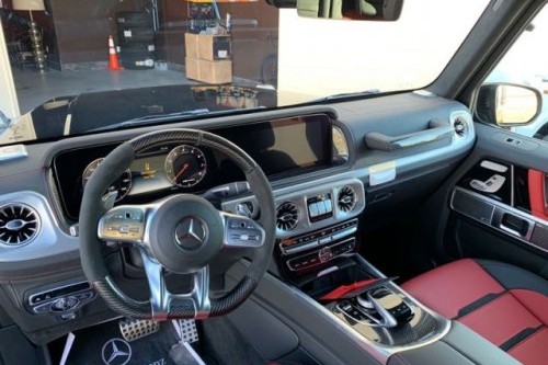 奔驰G63中控台的出风口均采用镀铬装饰,采用双屏幕布局,样式更精致,档次感更高,更奢华。座椅均采用黑色并加入红色装饰,多功能方向盘、座椅、仪表板、中控台和门板均采用手工缝制,细节之处更彰显尊贵。