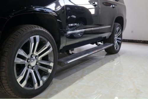 再看他的车身侧面,超过五米长的超大车身,正是美国人的喜好风格。防眩目后视镜大幅度的提高了行车安全。下方采用的是22寸轮毂,超大的轮毂设计,正好搭配他高大的车身,展现了他强大的性能。同时他具有胎压监测功能,使用非常的方便,另外他的脚踏也是电动脚踏,除了保护车体免受泥沙的侵蚀以外,还大大的增加了档次。这款车的尾部采用的则是电尾门设计,操作非常的简单。