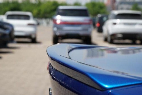 我们再看他的车身侧面,流动的车身非常漂亮,腰线的重心同样放在他的汽车尾部看上去肌肉感十足。作为一款两门硬顶派车,顶部鲨鱼鳍造型,彰显了他卓越的性能。注意看他的翼子板,上方还有着红白蓝三竖条标志。