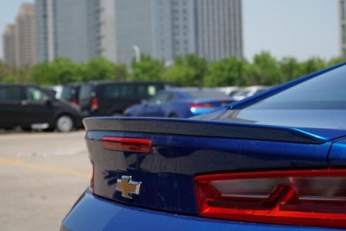 从他的车前我们可以看到他前脸相比与福特野马更加的运动,就我个人来说,还是喜欢科迈罗多一些。下方狭长的进气格栅同样是侵略性十足,上方有着“RS”标志。而在格栅上方则是雪佛兰的车标。犀利的灯组造型锋芒毕露。引擎盖上的线条,塑造了独特的肌肉感。