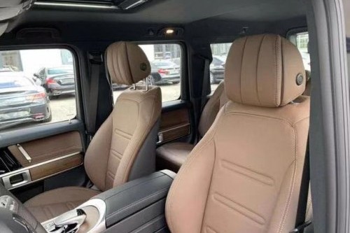奔驰G500内饰更显豪华气派,卓越的品质和精致的工艺在车内体现得淋漓尽致。方向盘以高档真皮包裹装饰,触感极其细腻。双12.3英寸液晶显示屏这种科技感很浓的设计,既能用在典雅的奔驰S级上,也能用在硬派的奔驰G级上,而且都很协调,没有违和感。