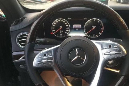 【进口车市】配置:19款 墨版S450两驱 长轴 (现车)黑/黑 环保公开 配置:9速,五座 全景天窗,环影,前后电眼,电吸门,智能卡,电尾门,18轮,底升,桃木方向盘,座椅记忆,前排座椅通风加热,后排冷热杯架,64色氛围灯,抬显,液晶仪表,柏林之声音响,四区空调,实木内饰,胎压监测,主动驻车辅助,主动制动辅助,车道保持辅助,盲点辅助,转向辅助,ACC (雷达测距)