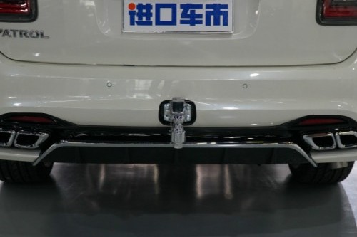 车尾部分,设计的简洁大方,上方尺寸较大的尾翼采用LED光源,更加有动感,也有很高的辨识度。下面是两个雾灯,四出的排气口还加个镀铬装饰,另外,这款车还加装了一个镀铬拖钩,非常精致。
